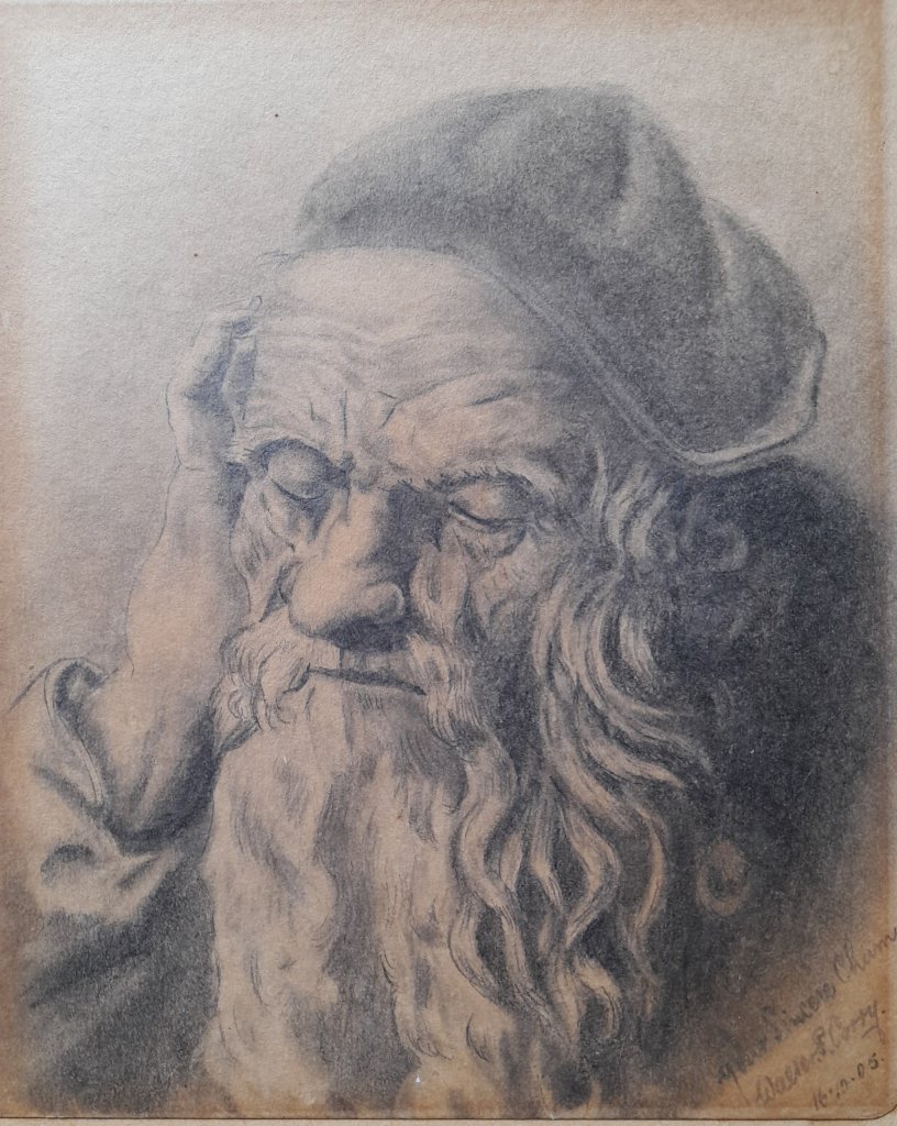 The artist here has used pencil/graphite to recreate a study by Albrecht Dürer. A study of a 92 year old man for Dürer’s painting of St Jerome. It is very well done. Not an exact copy but a very fine version. The subtle shading gives credit to the supreme artist which Dürer was. A fine and lovely artwork to look at.