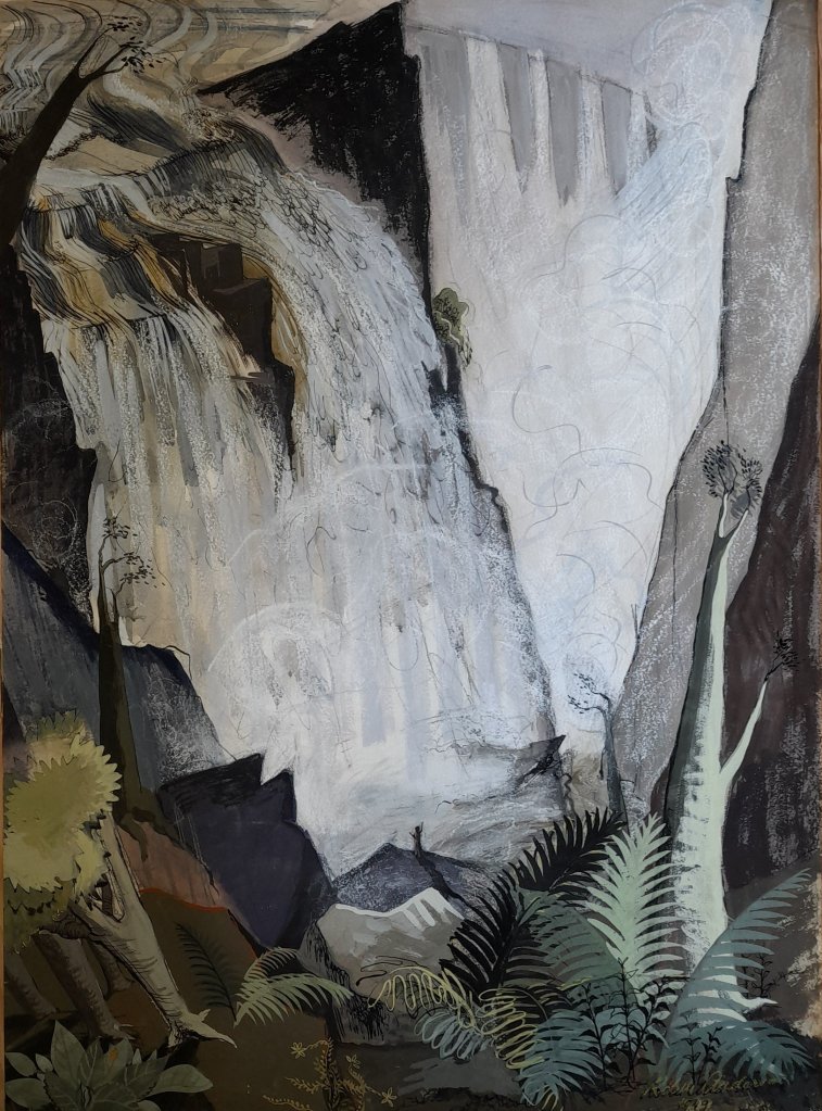 I came across and acquired three pieces by Ms Anderson. They are not silk batik works but are done in gouache on paper (from her early period). Striking colours and impressionism leap from the page. An amazing eye for structure and balance draw the viewer into her work. There is a sense of power and awe, of the harshness of life and yet peace and wonder are contained here through the beauty which is displayed.