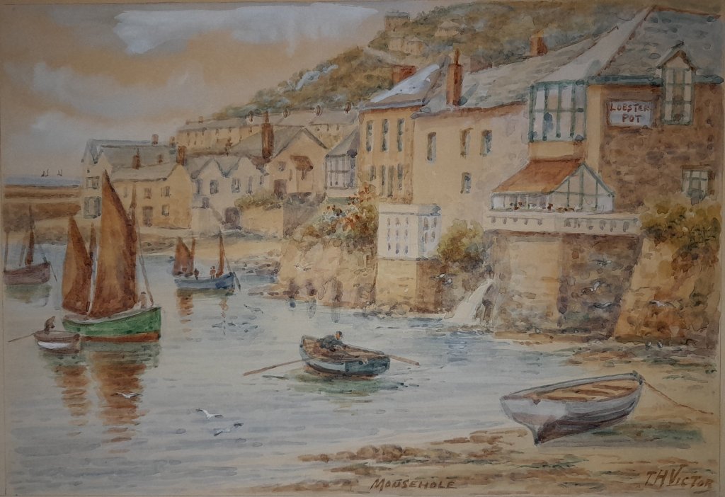 I thought today we might travel to two places. One which I have visited and the other not. Firstly, a trip to the south west of England to the small fishing village of Mousehole, Cornwall. Three miles from Penzance, this quaint fishing village with its fisherman’s cottages huddled around the harbour will capture your heart. The artist #ThomasHenryVictor (1894-1980) also known as #W.Sands lived in Mousehole. He studied art but turned down a scholarship to the Slade School in London. It is thought that he never went further from Mousehole than Truro. The watercolour from my collection shows the harbour with its fishing boats along with the Lobster Pot restaurant and adjoining buildings. It is typical of his work in that it displays a busy harbour and uses a lively colour palette.