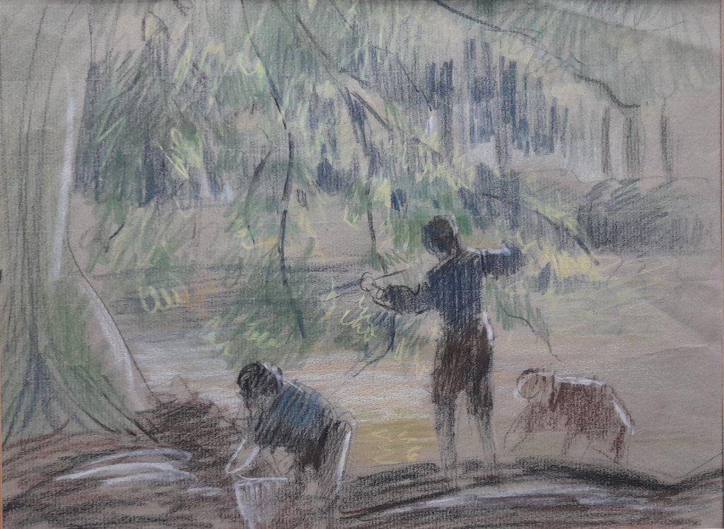 We begin with the most recent artwork. A piece done in pastel by artist #BerylTristNewman (1906-1991). Beryl Newman was born in St. Albans, Hertfordshire. She is best known as a portrait artist but also produced a wide variety of local and foreign landscapes, religious studies and images of children and animals. She married Reverend Canon Rupert Newman and lived in Lustleigh, Devon. She studied art in Bushey and then London under Hubert van Herkomer and Roland Wheelwright. She traveled extensively and produced many pieces during her travels. She exhibited regularly and was a great supporter of Exeter Cathedral Choir.