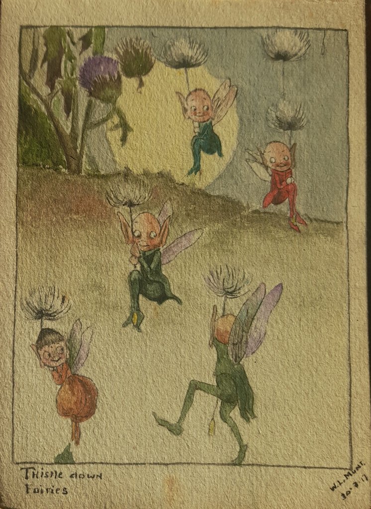 The best drawing is the image of the #ThistledownFairies. Copied in 1917 from the Alfred Ernest Walter George Aris original which was published in “Blackie’s Children’s Annual”