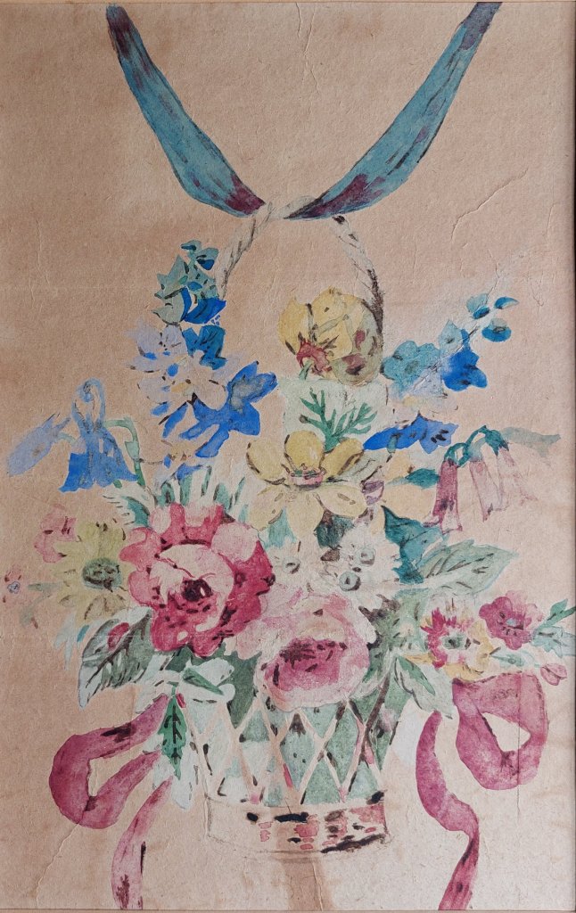 The above watercolour is initialled HST just beneath the base of the basket. I believe for Henry Scott Tuke. He was not known for still lifes but did create several of them. This one is created using the rough/free brush technique he was known for and the varied/fresh colour palette. A nice piece although somewhat atypical.