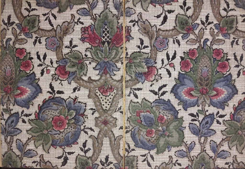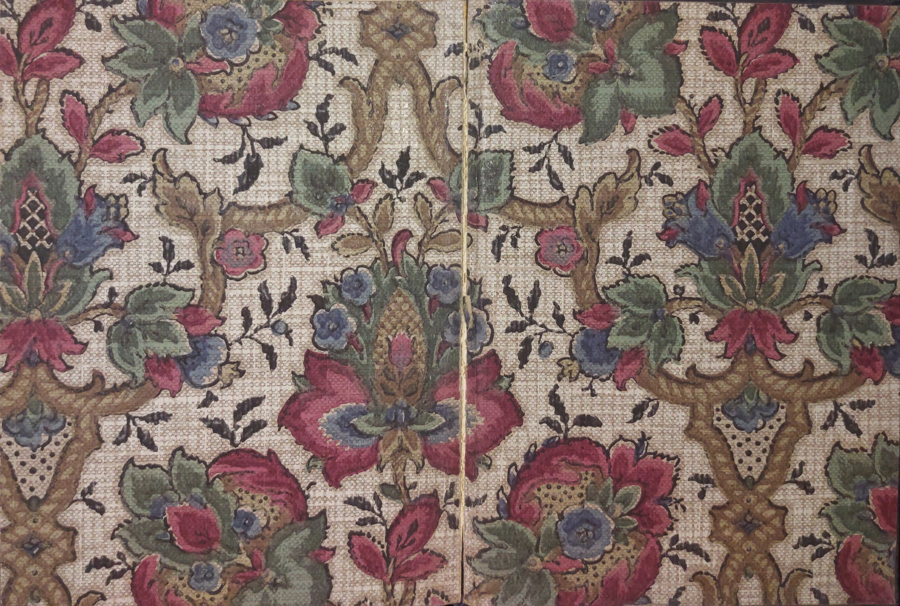 The final piece is actually two and were found on the inside the front and back of a bookcover. I believe they are examples of early wallpaper. In their own way, they are quite beautiful. The same pattern with varied colours giving a completely different feeling to each.