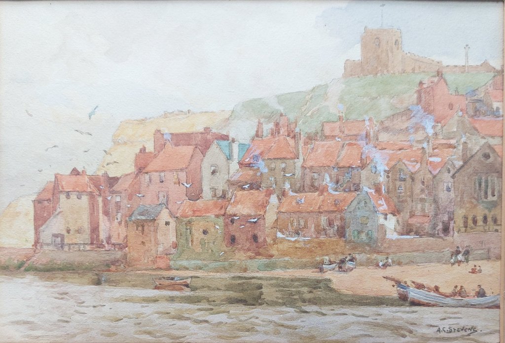 Today, we visit with a founding member of the celebrated StaithesArtClub, which was based around Whitby. #AlbertGeorgeStevens was a figurative painter who worked mostly in watercolour. He travelled to Antwerp to study at the Academy but later returned to Yorkshire to live. His works are slightly impressionistic, while his subjects were Yorkshire landscapes at times capturing local children playing, or shepherds and their sheep, milkmaids, scenes of rural life, and a number of images of #Whitby.