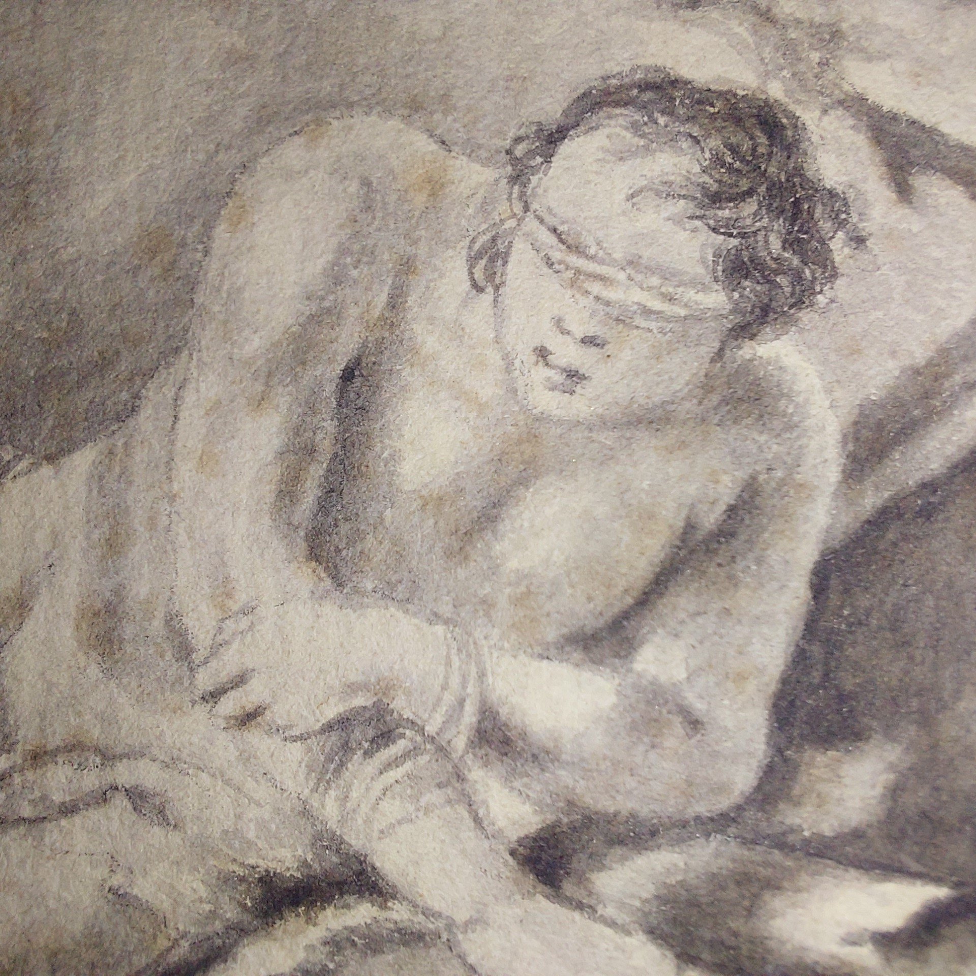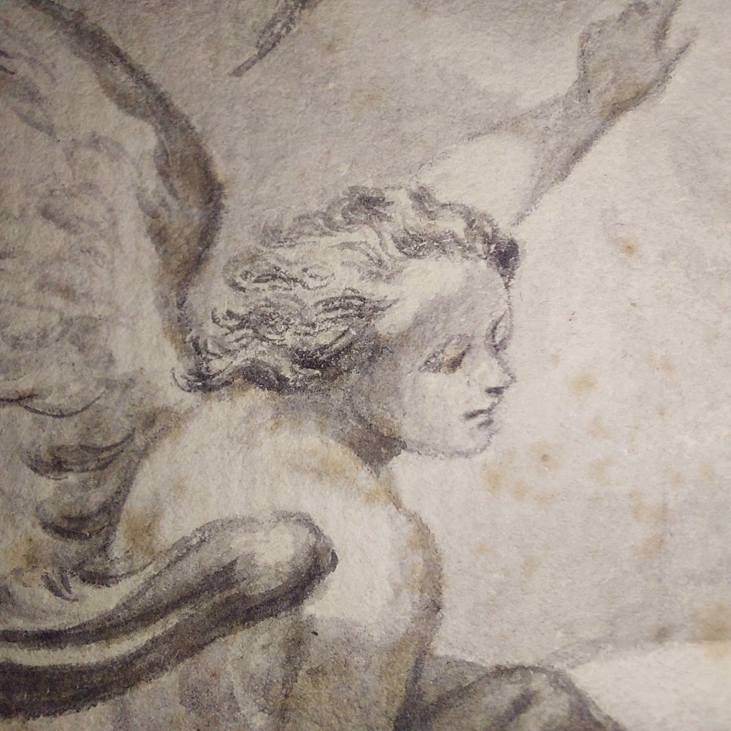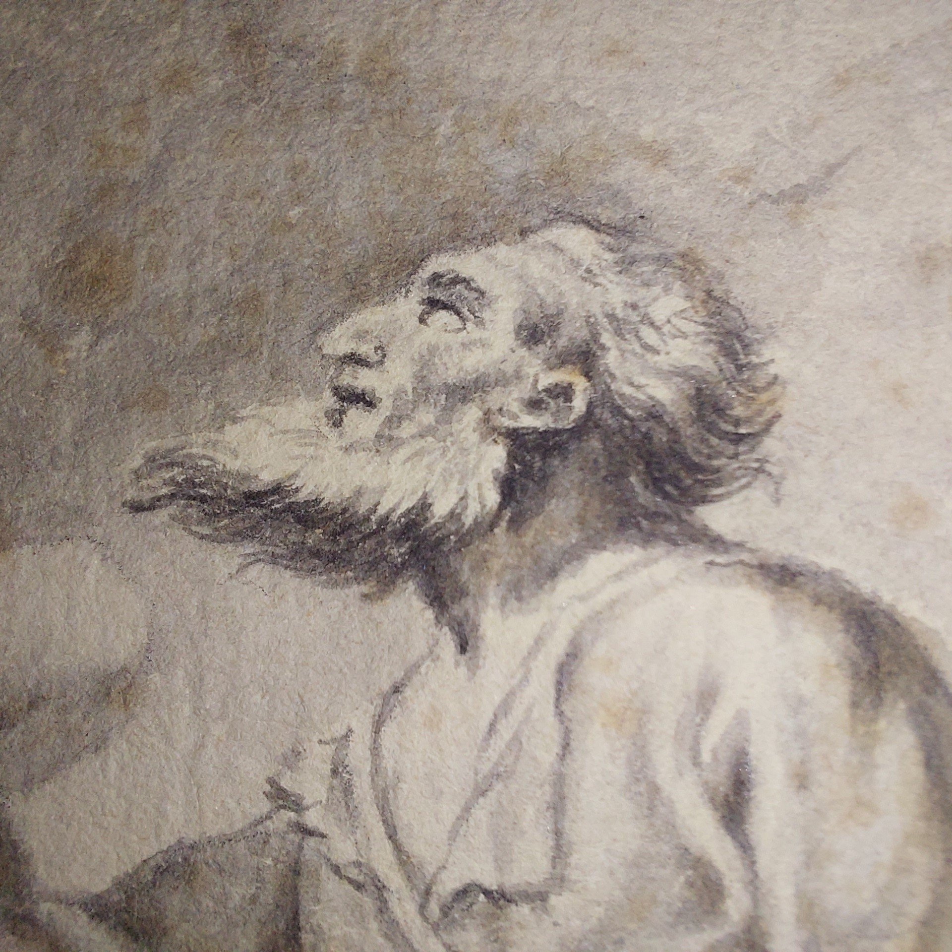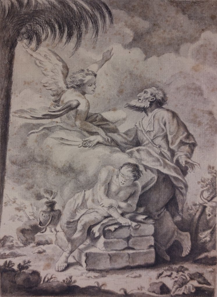 As I stated, the drawing is superbly done. It is 4.5″ × 6″ (11cm x 15cm), so it is quite small. Even so, you can see the sublime skill in the faces seen above. The ethereal beauty of the angels countenance, the awe and surprise of Abraham, and the surrender and confusion of Isaac are unquestionably exactly what the artist wished to create. A magnificent work by a master of his art. After more research, I have discovered that this drawing is possibly by #GiovanniBattistaPiazzetta (1682-1754)