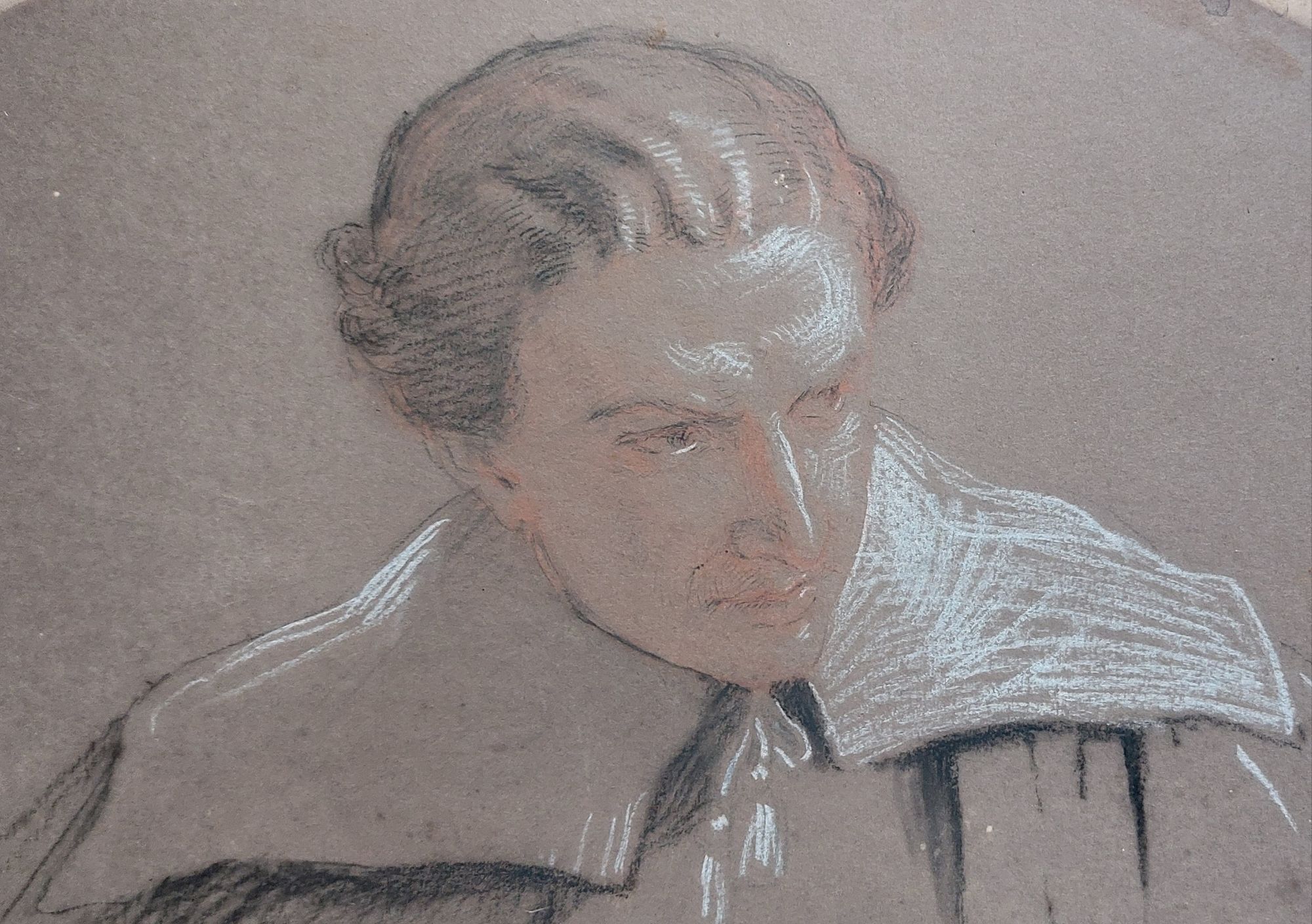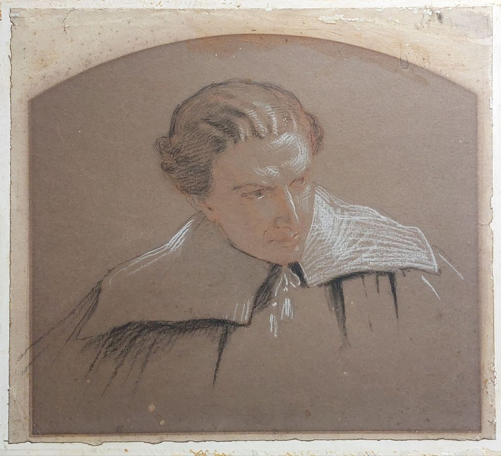 A portrait of an unknown gentleman done in three colours of chalk.The costume may mean that it might be from the late 1700’s. The paper has darkened over time, and the white chalk has brightened over those same years. An expert hand has created this image. Did it become an oil painting for some famous or wealthy patron? Is it of a famous or wealthy patron? All I can say is that it is beautifully rendered.
