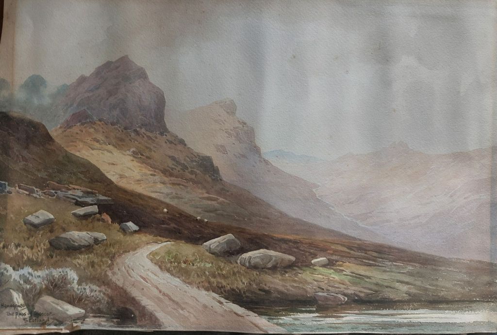 A quite beautiful image of ‘The Pass of Glencoe, Scotland’ by #CharlesEdwardHannaford (1863-1955). Hannaford was born in Liverpool and studied art in London and Paris. He was educated as an engineer/architect, and his work brought him to the notice of artists William Cook and Stanhope Forbes. He was also well thought of and collected by the Royal family. His art brought him to reside in Plymouth, Cornwall, London, and finally moving to Norfolk settling in the town of Thorpe. A very good piece even after being exposed to the elements.